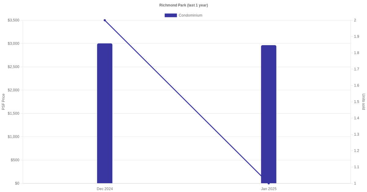 There were a total of 3 sales transactions for Richmond Park in the last 3 years, with the latest one recorded in Jan 2025. Disclaimer : our transactions data below does not include block numbers as the data is not available.