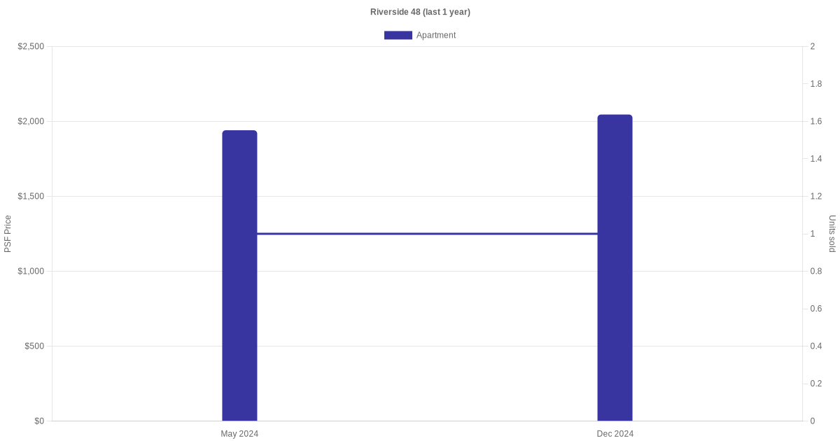 There were a total of 3 sales transactions for Riverside 48 in the last 3 years, with the latest one recorded in Aug 2025. Disclaimer : our transactions data below does not include block numbers as the data is not available.