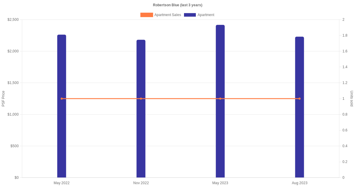 The graph below shows the average monthly transacted sale price for each of the apartment units for Robertson Blue in the last 3 years. This is based on the transactional data collated for Robertson Blue for the selected period.