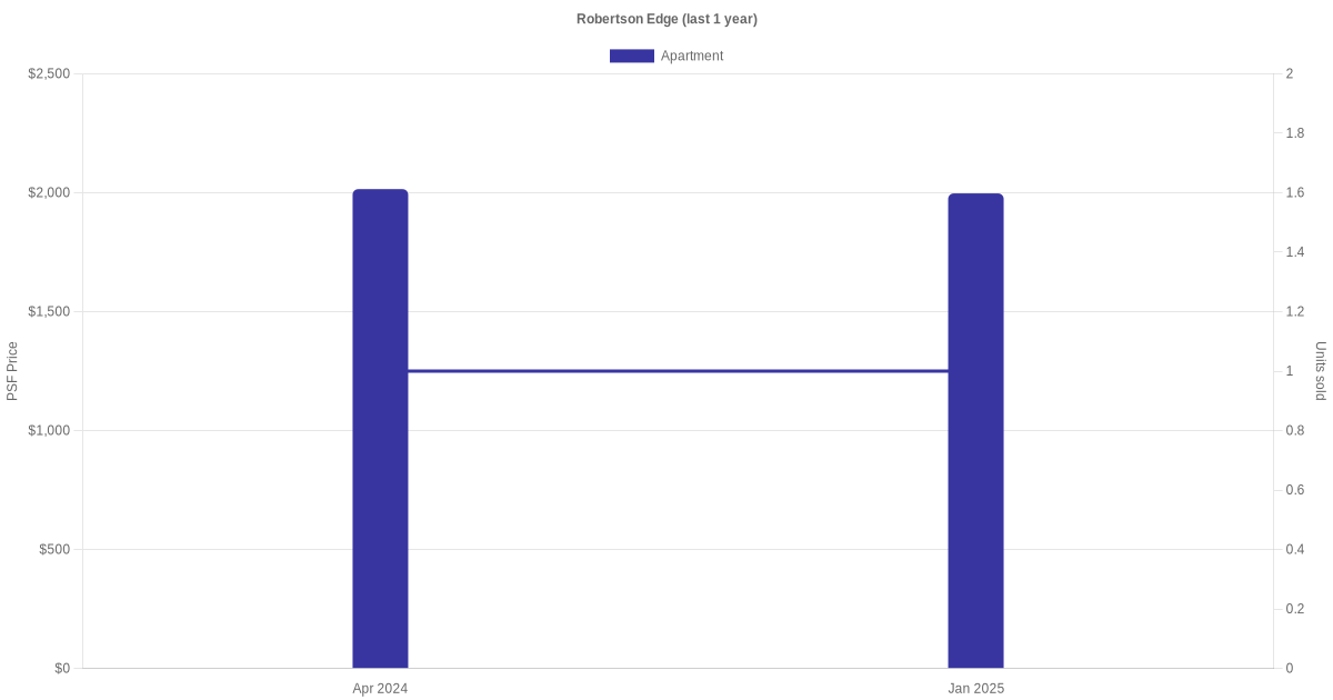 There were a total of 6 sales transactions for Robertson Edge in the last 3 years, with the latest one recorded in Apr 2025. Disclaimer : our transactions data below does not include block numbers as the data is not available.