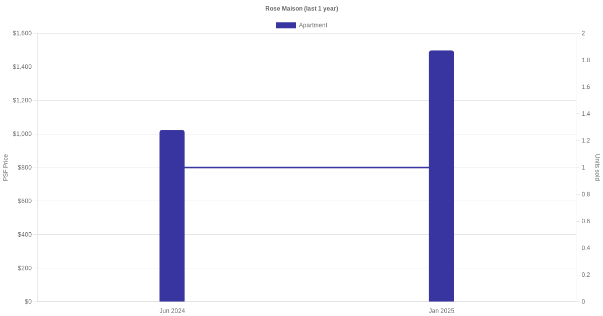 There were a total of 3 sales transactions for Rose Maison in the last 3 years, with the latest one recorded in Jan 2025. Disclaimer : our transactions data below does not include block numbers as the data is not available.