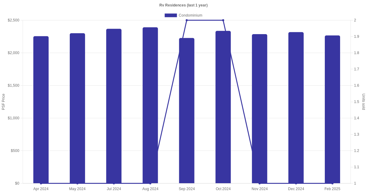 There were a total of 45 sales transactions for Rv Residences in the last 3 years, with the latest one recorded in Jan 2026. Disclaimer : our transactions data below does not include block numbers as the data is not available. If you would like to see a list of blocks / addresses associated with Rv Residences, please click here.