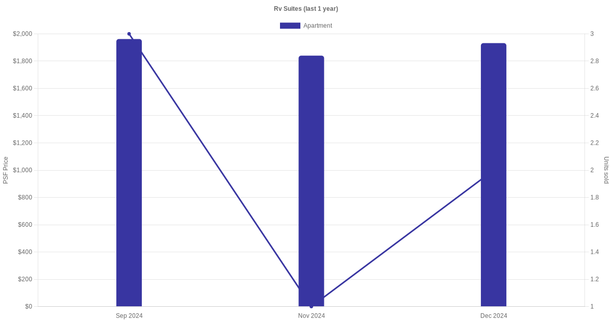 There were a total of 15 sales transactions for Rv Suites in the last 3 years, with the latest one recorded in Apr 2025. Disclaimer : our transactions data below does not include block numbers as the data is not available.