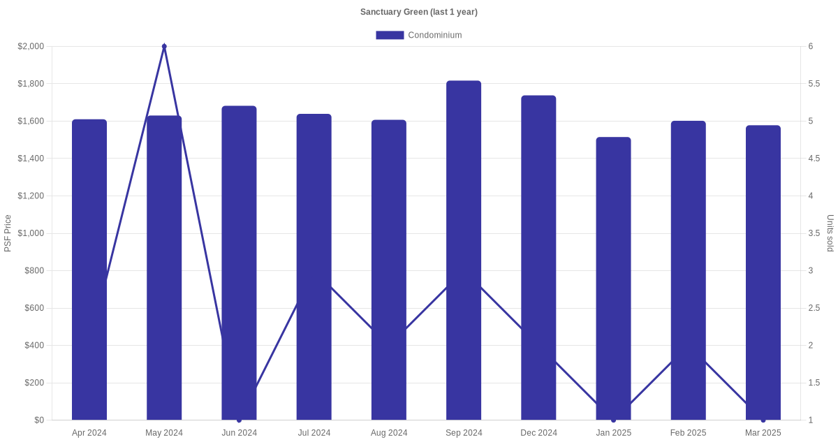 The graph below shows the average monthly transacted sale price for each of the condominium units for Sanctuary Green in the last 3 years. This is based on the transactional data collated for Sanctuary Green for the selected period.