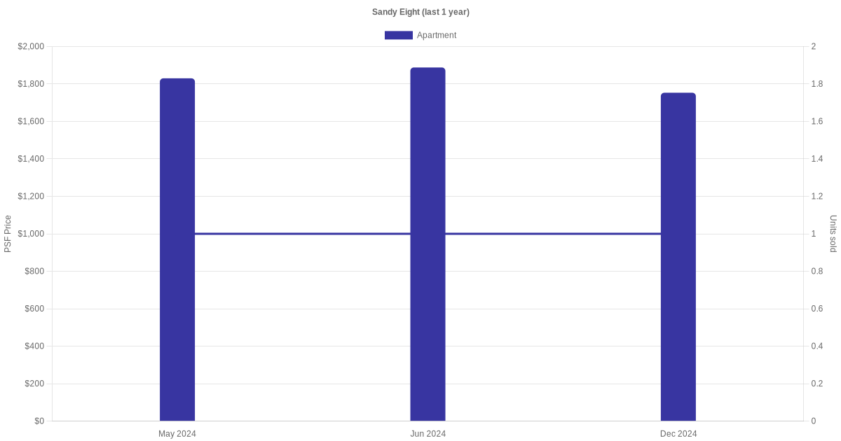 There were a total of 6 sales transactions for Sandy Eight in the last 3 years, with the latest one recorded in May 2025. Disclaimer : our transactions data below does not include block numbers as the data is not available.