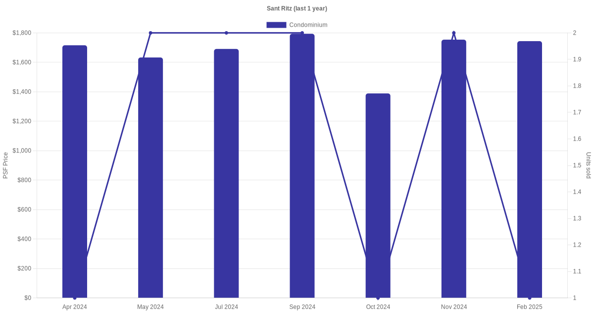 There were a total of 41 sales transactions for Sant Ritz in the last 3 years, with the latest one recorded in Nov 2025. Disclaimer : our transactions data below does not include block numbers as the data is not available. If you would like to see a list of blocks / addresses associated with Sant Ritz, please click here.