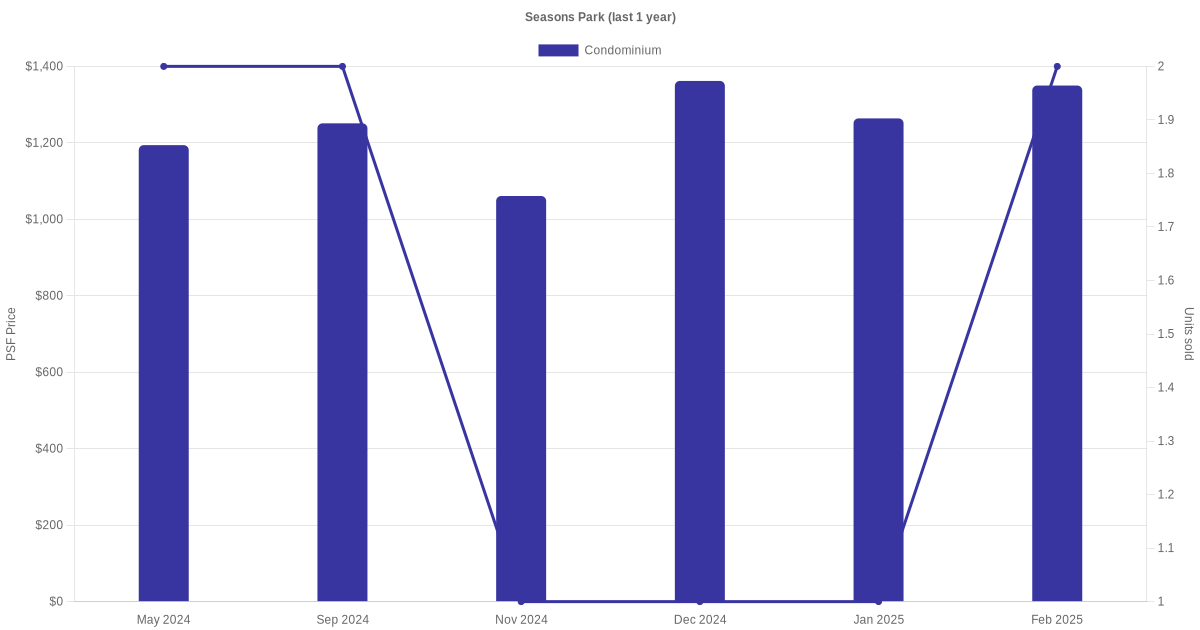 There were a total of 43 sales transactions for Seasons Park in the last 3 years, with the latest one recorded in Oct 2025. Disclaimer : our transactions data below does not include block numbers as the data is not available. If you would like to see a list of blocks / addresses associated with Seasons Park, please click here.