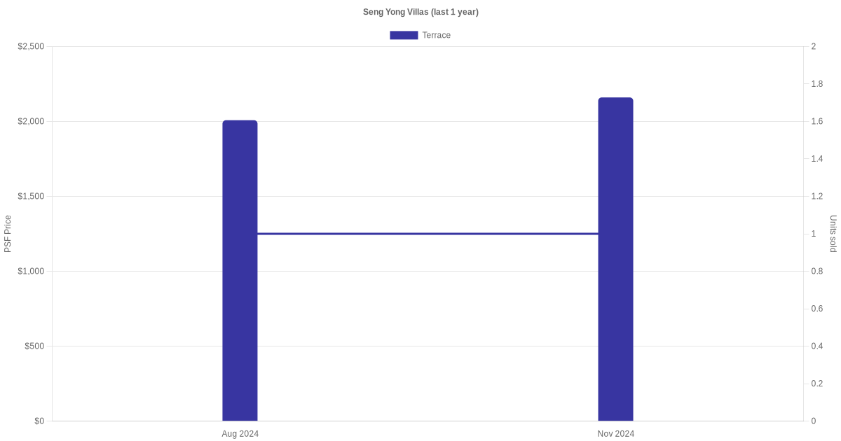 There were a total of 4 sales transactions for Seng Yong Villas in the last 3 years, with the latest one recorded in Aug 2025. Disclaimer : our transactions data below does not include block numbers as the data is not available.