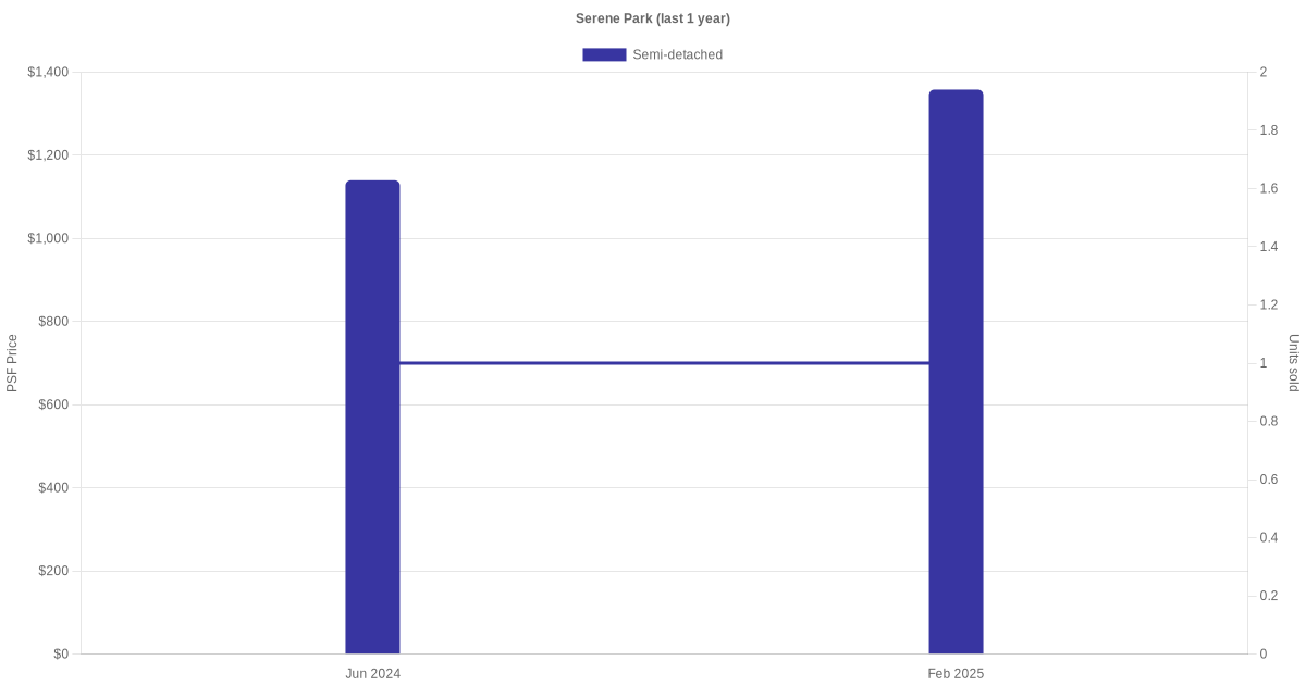 There were a total of 4 sales transactions for Serene Park in the last 3 years, with the latest one recorded in Feb 2025. Disclaimer : our transactions data below does not include block numbers as the data is not available.