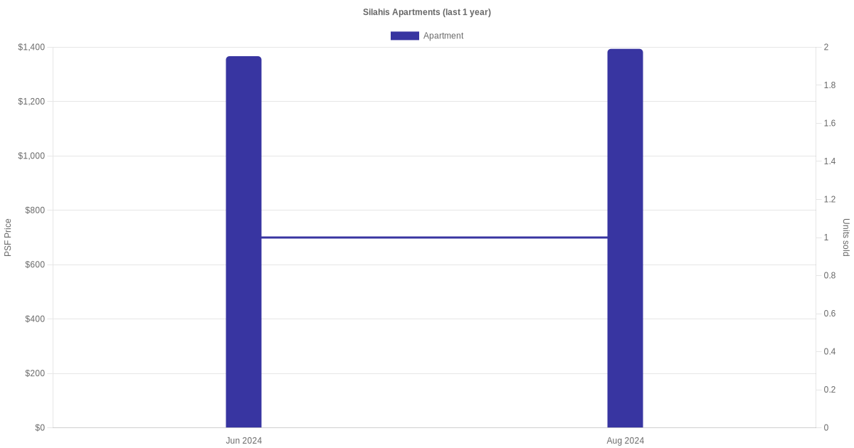 There were a total of 2 sales transactions for Silahis Apartments in the last 3 years, with the latest one recorded in Aug 2024. Disclaimer : our transactions data below does not include block numbers as the data is not available.