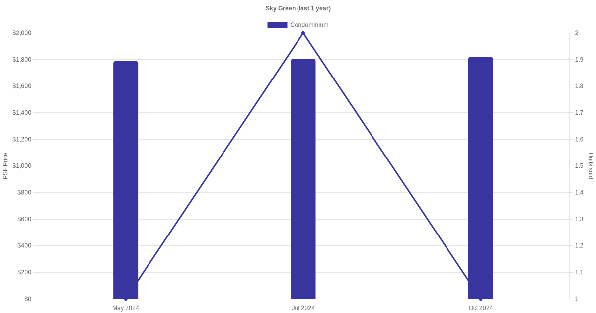 There were a total of 28 sales transactions for Sky Green in the last 3 years, with the latest one recorded in Oct 2025. Disclaimer : our transactions data below does not include block numbers as the data is not available.