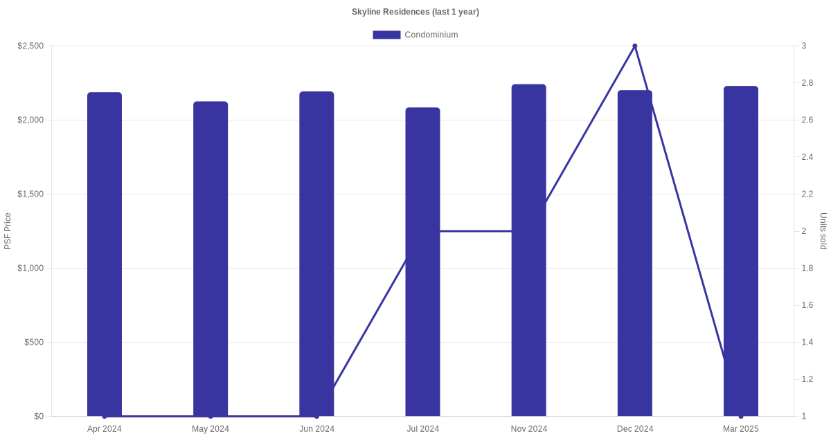 There were a total of 38 sales transactions for Skyline Residences in the last 3 years, with the latest one recorded in Nov 2025. Disclaimer : our transactions data below does not include block numbers as the data is not available. If you would like to see a list of blocks / addresses associated with Skyline Residences, please click here.