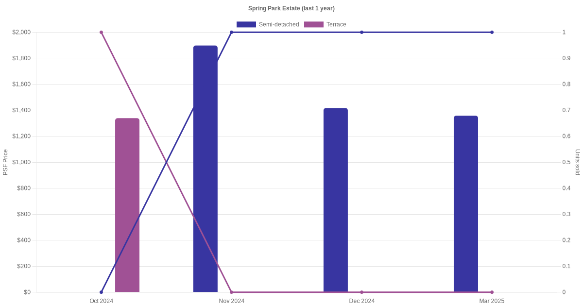 There were a total of 11 sales transactions for Spring Park Estate in the last 3 years, with the latest one recorded in Jan 2026. Disclaimer : our transactions data below does not include block numbers as the data is not available.