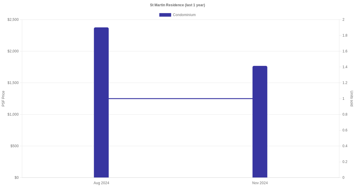 There were a total of 7 sales transactions for St Martin Residence in the last 3 years, with the latest one recorded in Dec 2025. Disclaimer : our transactions data below does not include block numbers as the data is not available.