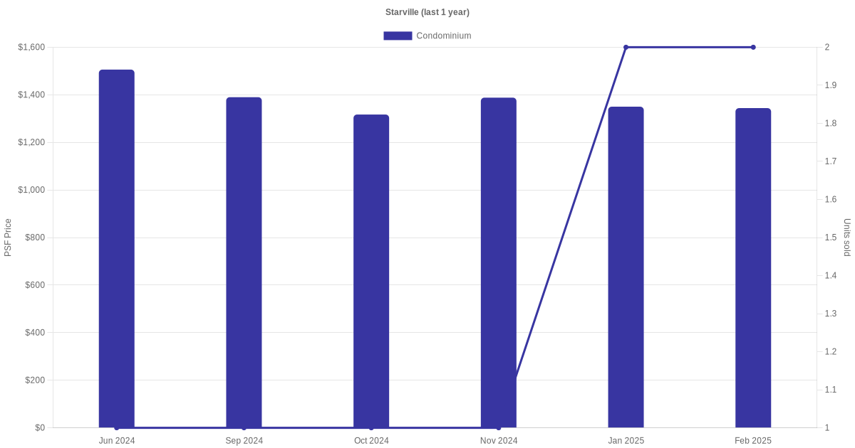 There were a total of 17 sales transactions for Starville in the last 3 years, with the latest one recorded in Sep 2025. Disclaimer : our transactions data below does not include block numbers as the data is not available.
