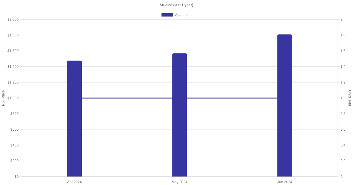 There were a total of 9 sales transactions for Studio8 in the last 3 years, with the latest one recorded in Mar 2025. Disclaimer : our transactions data below does not include block numbers as the data is not available.