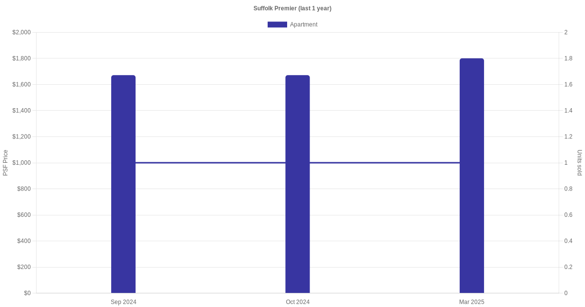 There were a total of 4 sales transactions for Suffolk Premier in the last 3 years, with the latest one recorded in Mar 2025. Disclaimer : our transactions data below does not include block numbers as the data is not available.