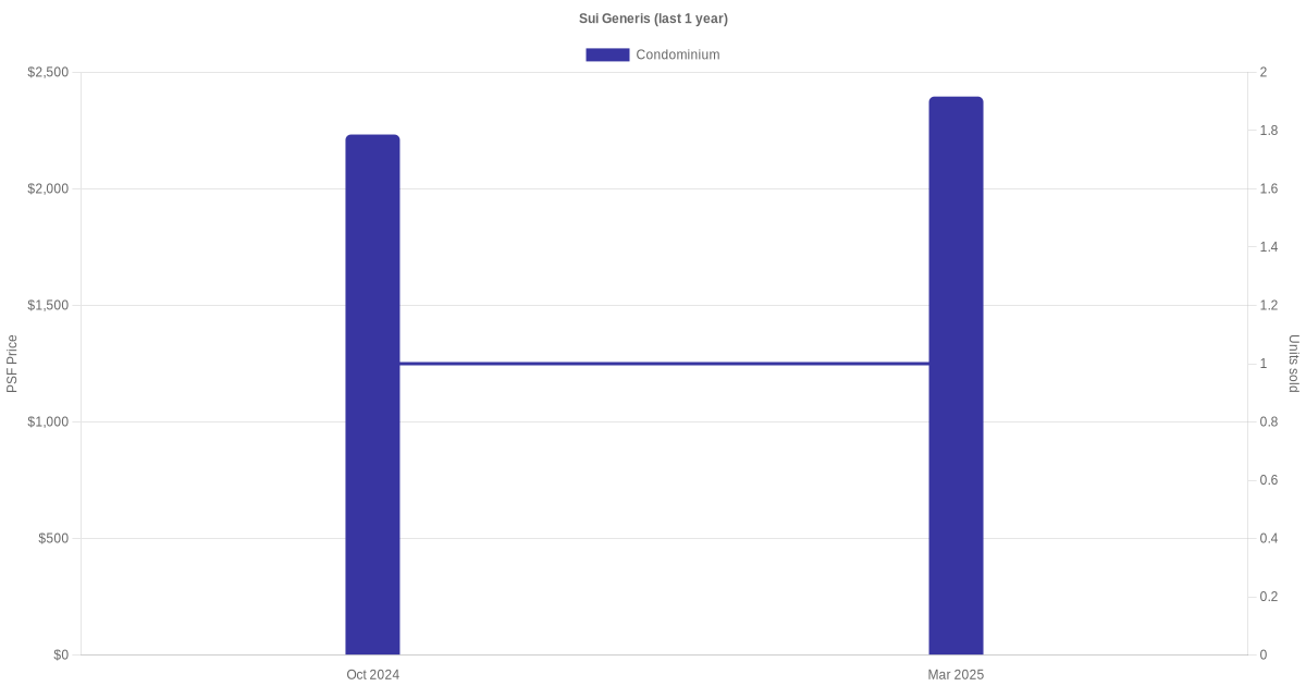 There were a total of 9 sales transactions for Sui Generis in the last 3 years, with the latest one recorded in Dec 2025. Disclaimer : our transactions data below does not include block numbers as the data is not available.