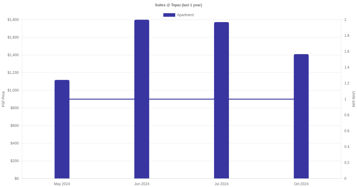 There were a total of 7 sales transactions for Suites @ Topaz in the last 3 years, with the latest one recorded in Nov 2025. Disclaimer : our transactions data below does not include block numbers as the data is not available.