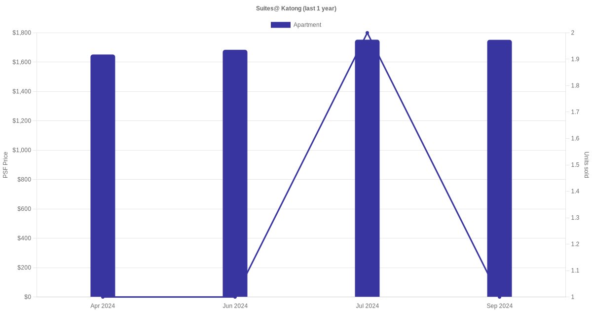 There were a total of 7 sales transactions for Suites@ Katong in the last 3 years, with the latest one recorded in Sep 2025. Disclaimer : our transactions data below does not include block numbers as the data is not available.