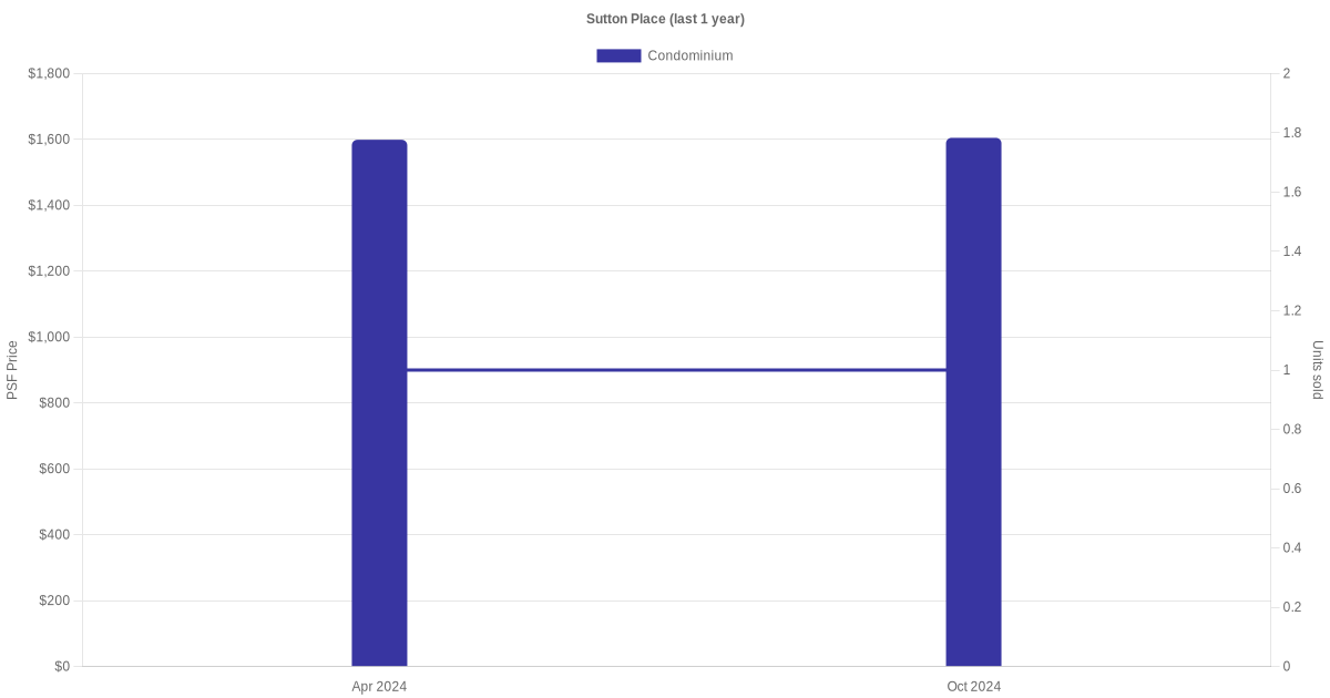 The graph below shows the average monthly transacted sale price for each of the condominium units for Sutton Place in the last 3 years. This is based on the transactional data collated for Sutton Place for the selected period.