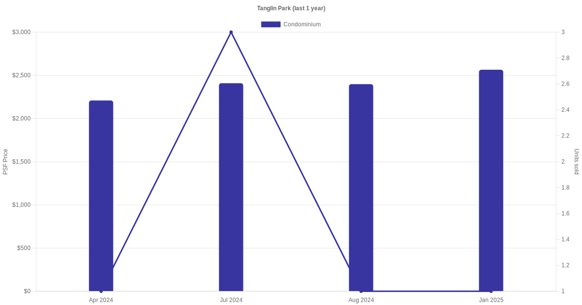 There were a total of 22 sales transactions for Tanglin Park in the last 3 years, with the latest one recorded in Dec 2025. Disclaimer : our transactions data below does not include block numbers as the data is not available.