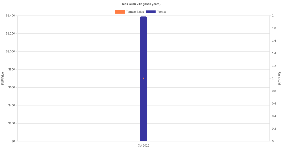 There were a total of 1 sales transactions for Teck Guan Ville in the last 3 years, with the latest one recorded in Oct 2025. Disclaimer : our transactions data below does not include block numbers as the data is not available. If you would like to see a list of blocks / addresses associated with Teck Guan Ville, please click here.