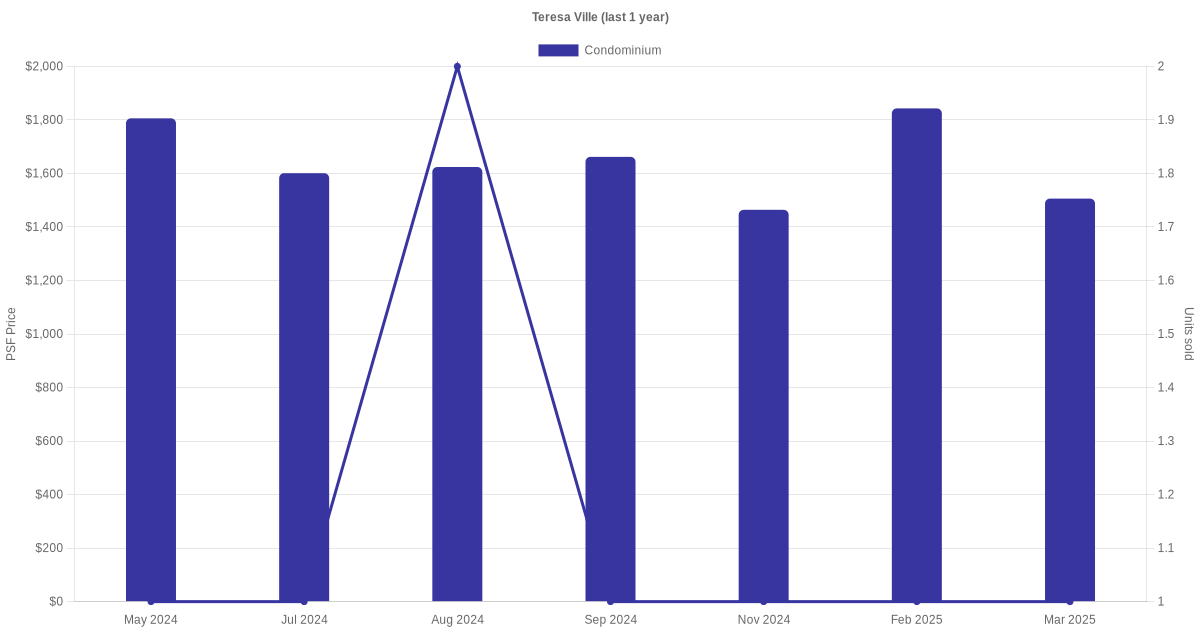The graph below shows the average monthly transacted sale price for each of the condominium units for Teresa Ville in the last 3 years. This is based on the transactional data collated for Teresa Ville for the selected period.