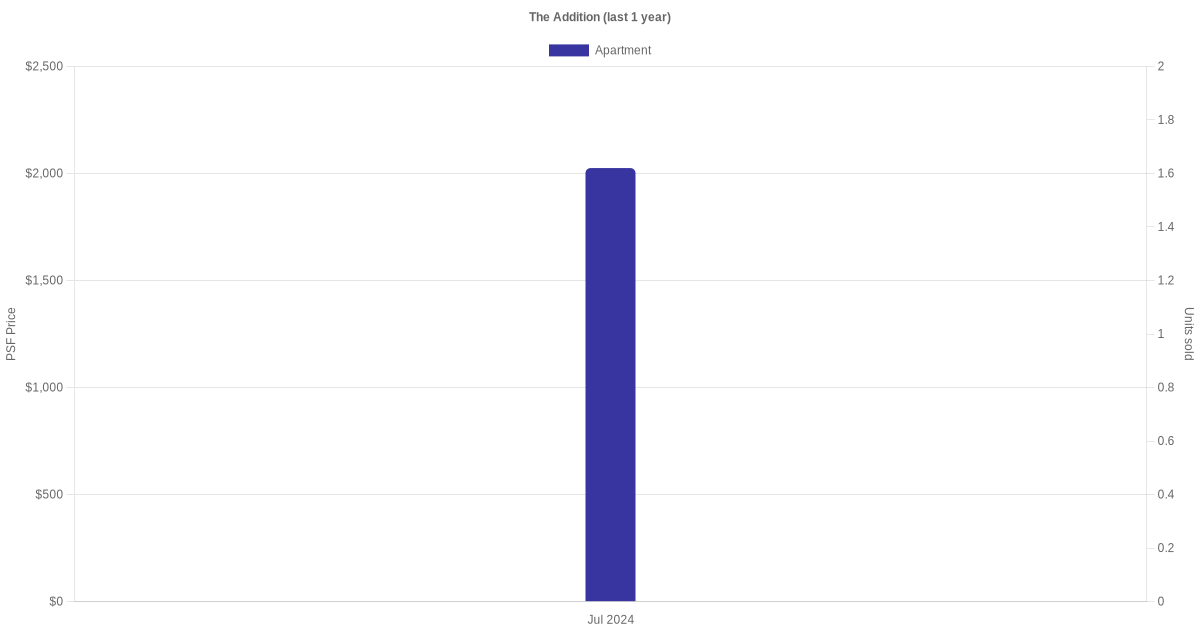 There were a total of 3 sales transactions for The Addition in the last 3 years, with the latest one recorded in Jul 2025. Disclaimer : our transactions data below does not include block numbers as the data is not available.