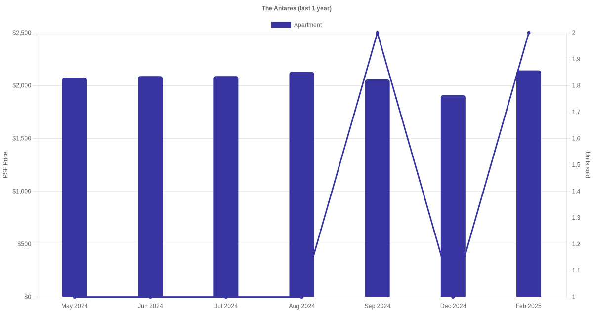 There were a total of 28 sales transactions for The Antares in the last 3 years, with the latest one recorded in Dec 2025. Disclaimer : our transactions data below does not include block numbers as the data is not available.