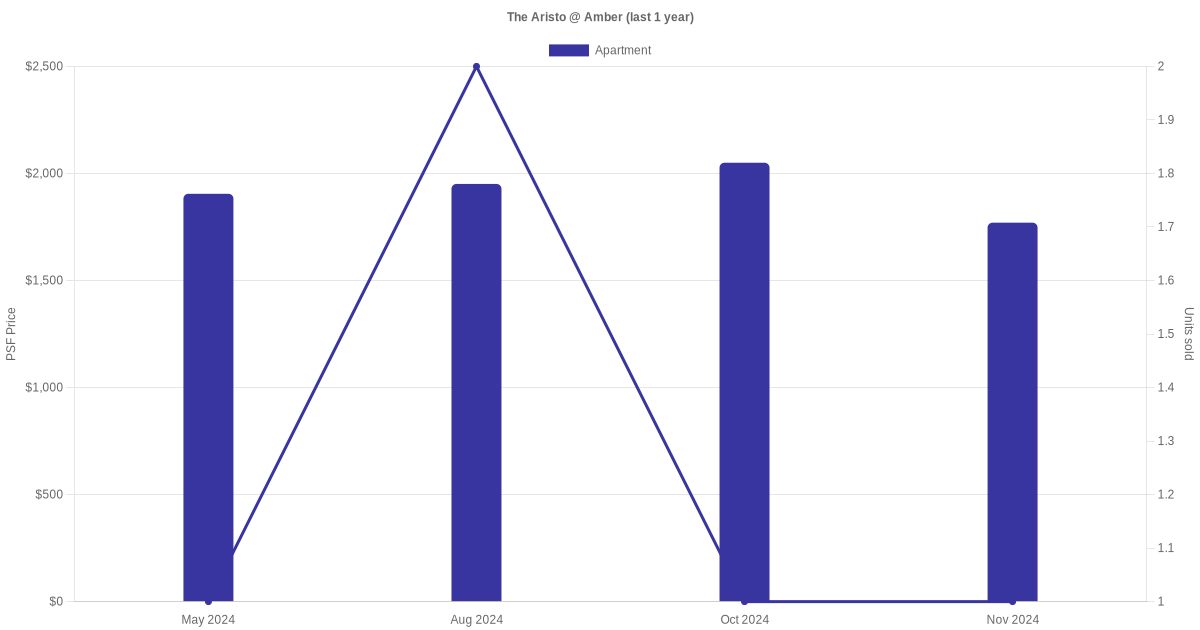 There were a total of 11 sales transactions for The Aristo @ Amber in the last 3 years, with the latest one recorded in Nov 2024. Disclaimer : our transactions data below does not include block numbers as the data is not available.