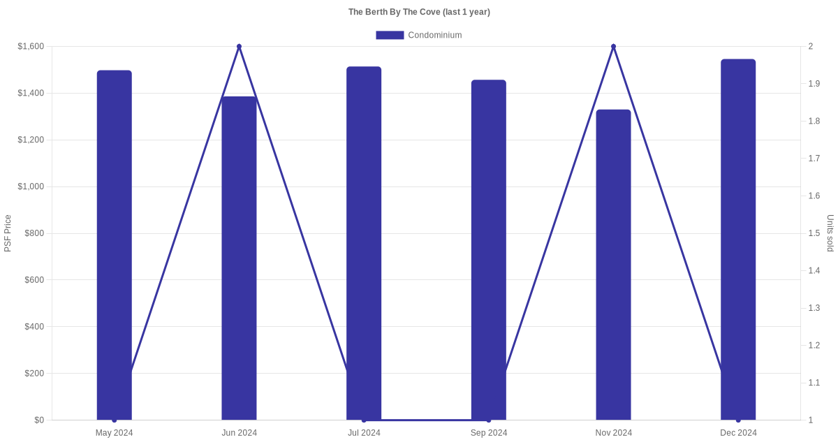 The graph below shows the average monthly transacted sale price for each of the condominium units for The Berth By The Cove in the last 3 years. This is based on the transactional data collated for The Berth By The Cove for the selected period.
