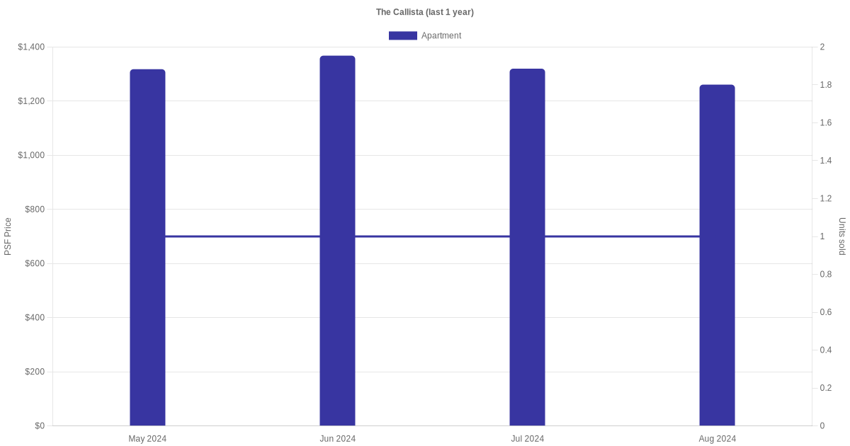 There were a total of 9 sales transactions for The Callista in the last 3 years, with the latest one recorded in Jul 2025. Disclaimer : our transactions data below does not include block numbers as the data is not available.