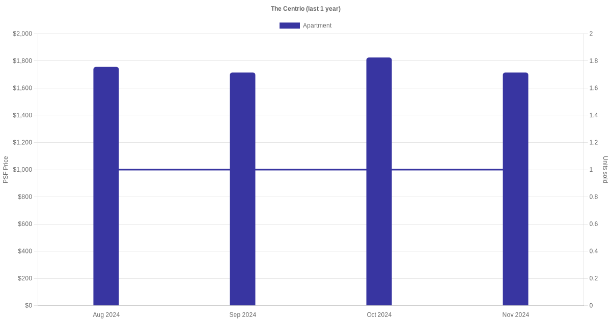 There were a total of 6 sales transactions for The Centrio in the last 3 years, with the latest one recorded in Mar 2025. Disclaimer : our transactions data below does not include block numbers as the data is not available.