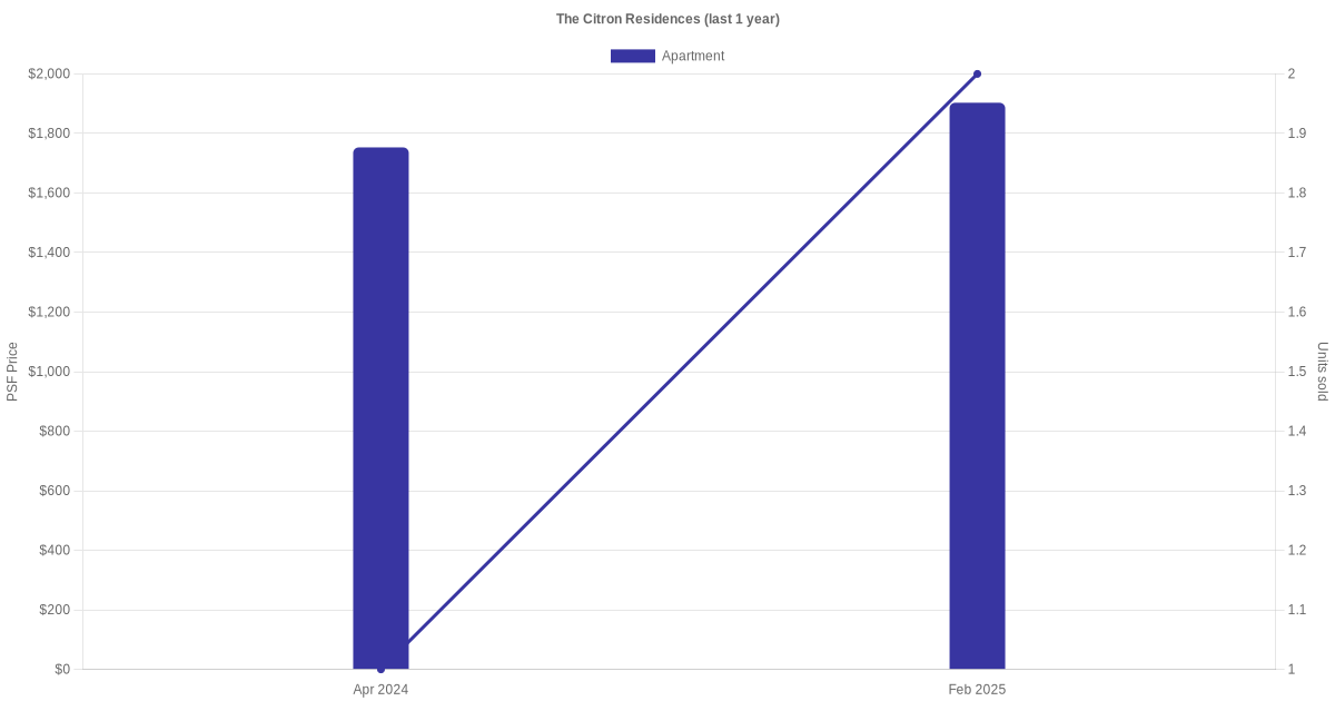 There were a total of 13 sales transactions for The Citron Residences in the last 3 years, with the latest one recorded in Oct 2025. Disclaimer : our transactions data below does not include block numbers as the data is not available.