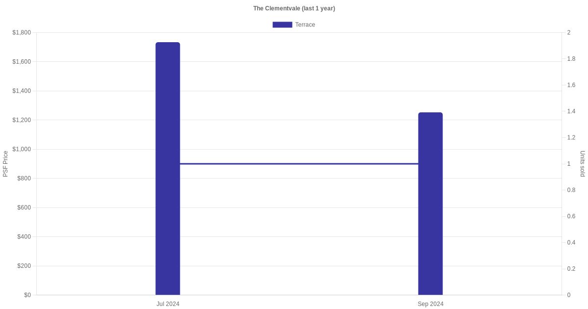 The graph below shows the average monthly transacted sale price for each of the terrace units for The Clementvale in the last 3 years. This is based on the transactional data collated for The Clementvale for the selected period.