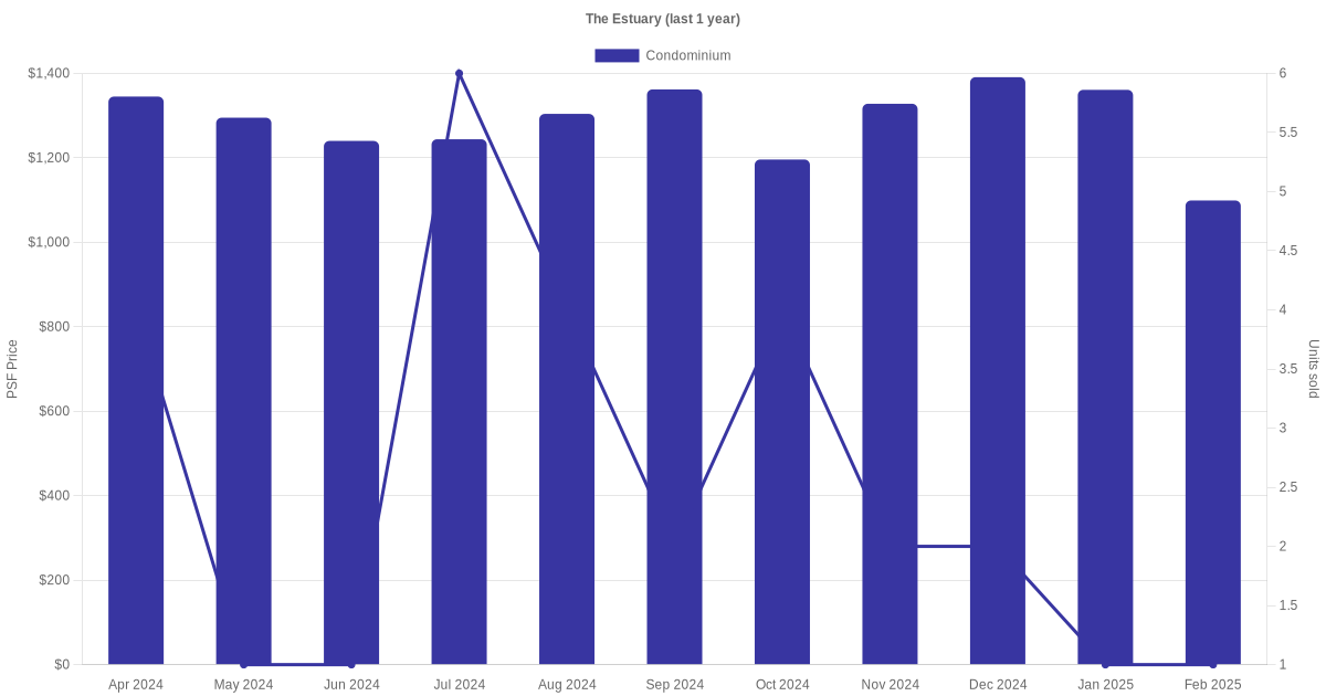 There were a total of 67 sales transactions for The Estuary in the last 3 years, with the latest one recorded in Jan 2026. Disclaimer : our transactions data below does not include block numbers as the data is not available. If you would like to see a list of blocks / addresses associated with The Estuary, please click here.