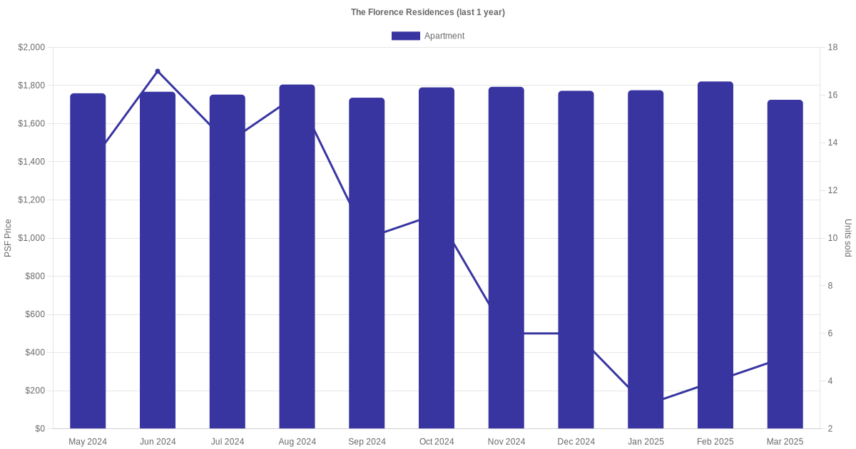 There were a total of 338 sales transactions for The Florence Residences in the last 3 years, with the latest one recorded in Dec 2025. Disclaimer : our transactions data below does not include block numbers as the data is not available. If you would like to see a list of blocks / addresses associated with The Florence Residences, please click here.