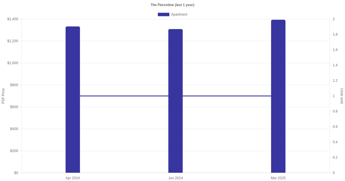 There were a total of 5 sales transactions for The Florentine in the last 3 years, with the latest one recorded in Nov 2025. Disclaimer : our transactions data below does not include block numbers as the data is not available.