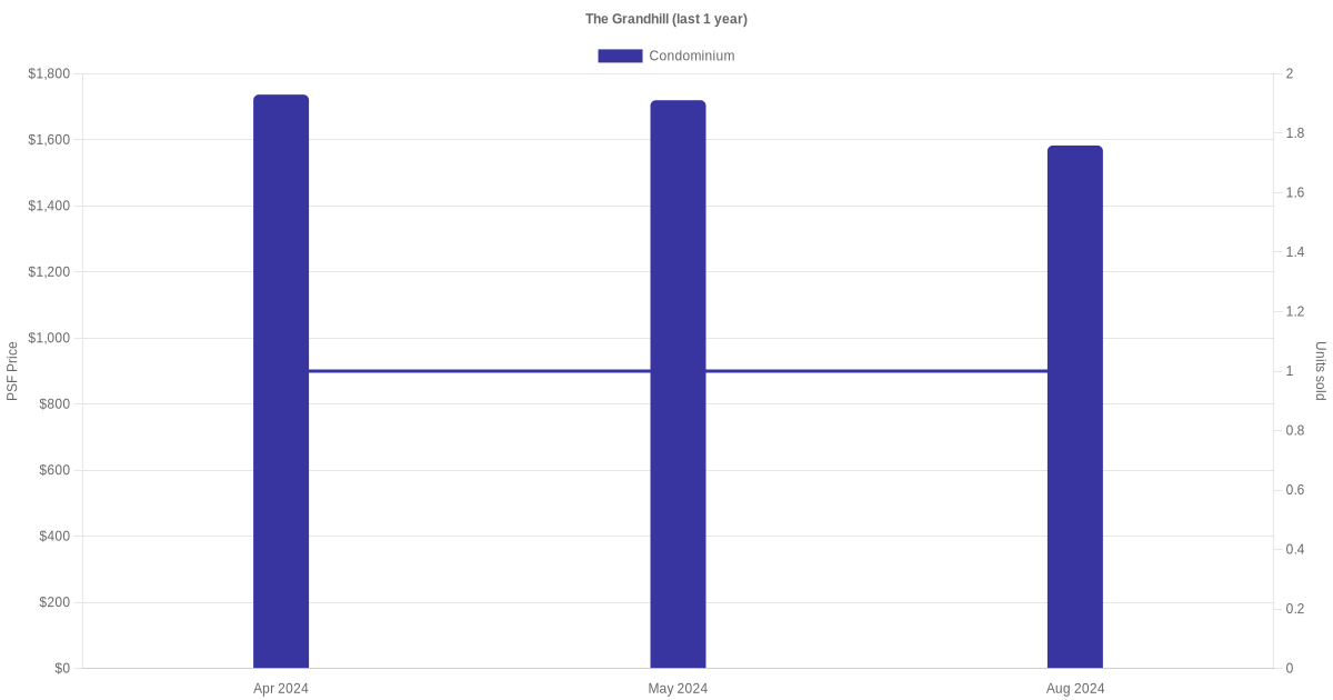 The graph below shows the average monthly transacted sale price for each of the condominium units for The Grandhill in the last 3 years. This is based on the transactional data collated for The Grandhill for the selected period.