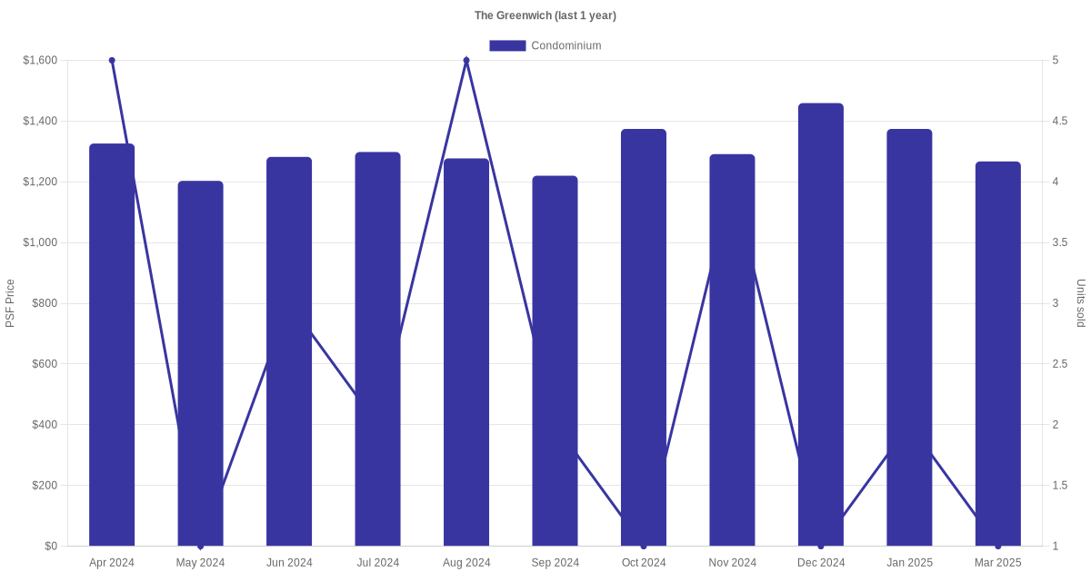 There were a total of 57 sales transactions for The Greenwich in the last 3 years, with the latest one recorded in Nov 2025. Disclaimer : our transactions data below does not include block numbers as the data is not available.