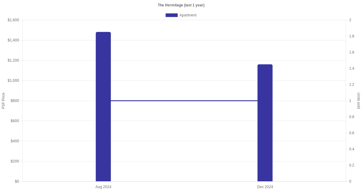 There were a total of 4 sales transactions for The Hermitage in the last 3 years, with the latest one recorded in Dec 2024. Disclaimer : our transactions data below does not include block numbers as the data is not available.