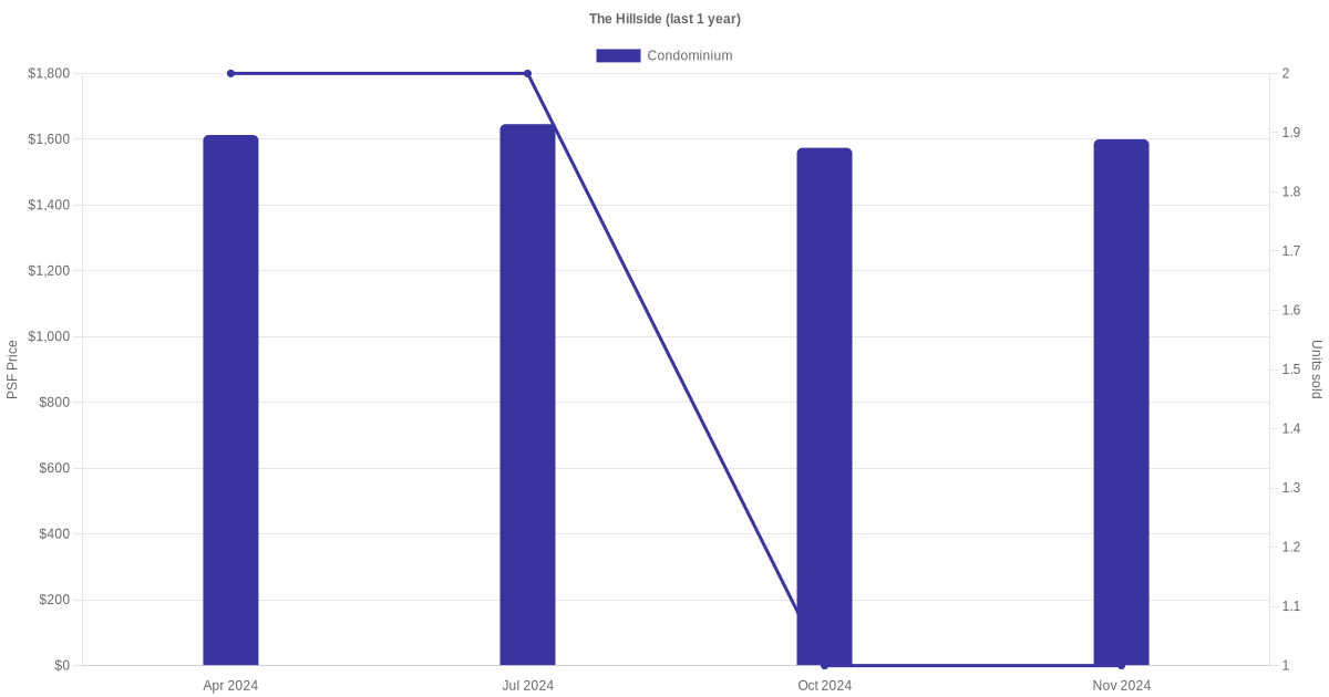 There were a total of 14 sales transactions for The Hillside in the last 3 years, with the latest one recorded in Dec 2025. Disclaimer : our transactions data below does not include block numbers as the data is not available.
