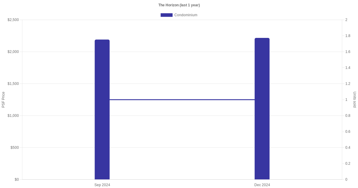 There were a total of 5 sales transactions for The Horizon in the last 3 years, with the latest one recorded in Sep 2025. Disclaimer : our transactions data below does not include block numbers as the data is not available.