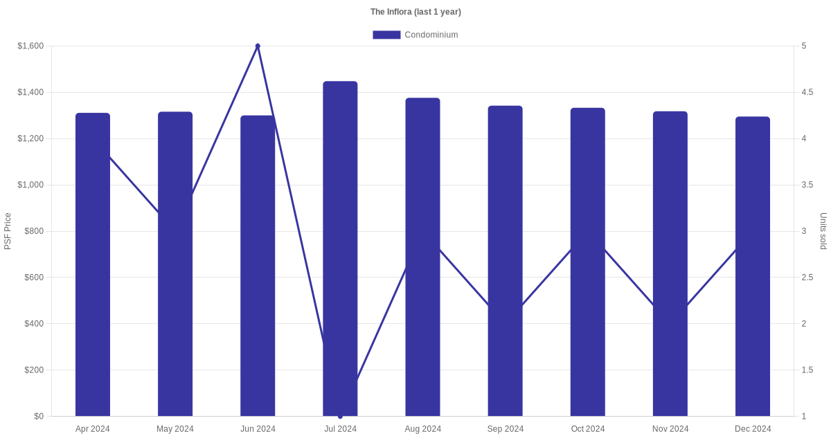 There were a total of 81 sales transactions for The Inflora in the last 3 years, with the latest one recorded in Dec 2025. Disclaimer : our transactions data below does not include block numbers as the data is not available. If you would like to see a list of blocks / addresses associated with The Inflora, please click here.