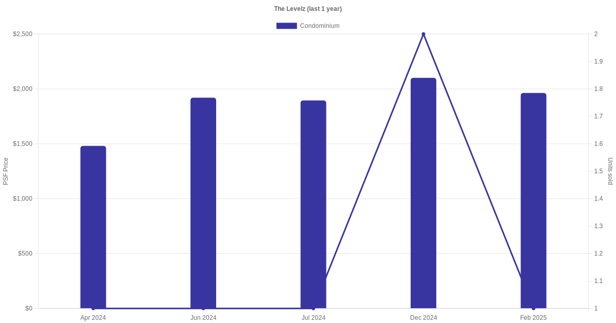 The graph below shows the average monthly transacted sale price for each of the condominium units for The Levelz in the last 3 years. This is based on the transactional data collated for The Levelz for the selected period.