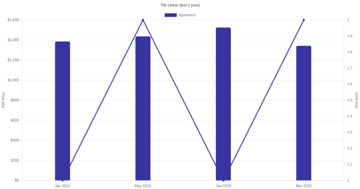 There were a total of 16 sales transactions for The Linear in the last 3 years, with the latest one recorded in Dec 2025. Disclaimer : our transactions data below does not include block numbers as the data is not available.