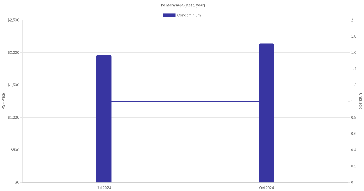 There were a total of 7 sales transactions for The Merasaga in the last 3 years, with the latest one recorded in Oct 2025. Disclaimer : our transactions data below does not include block numbers as the data is not available.