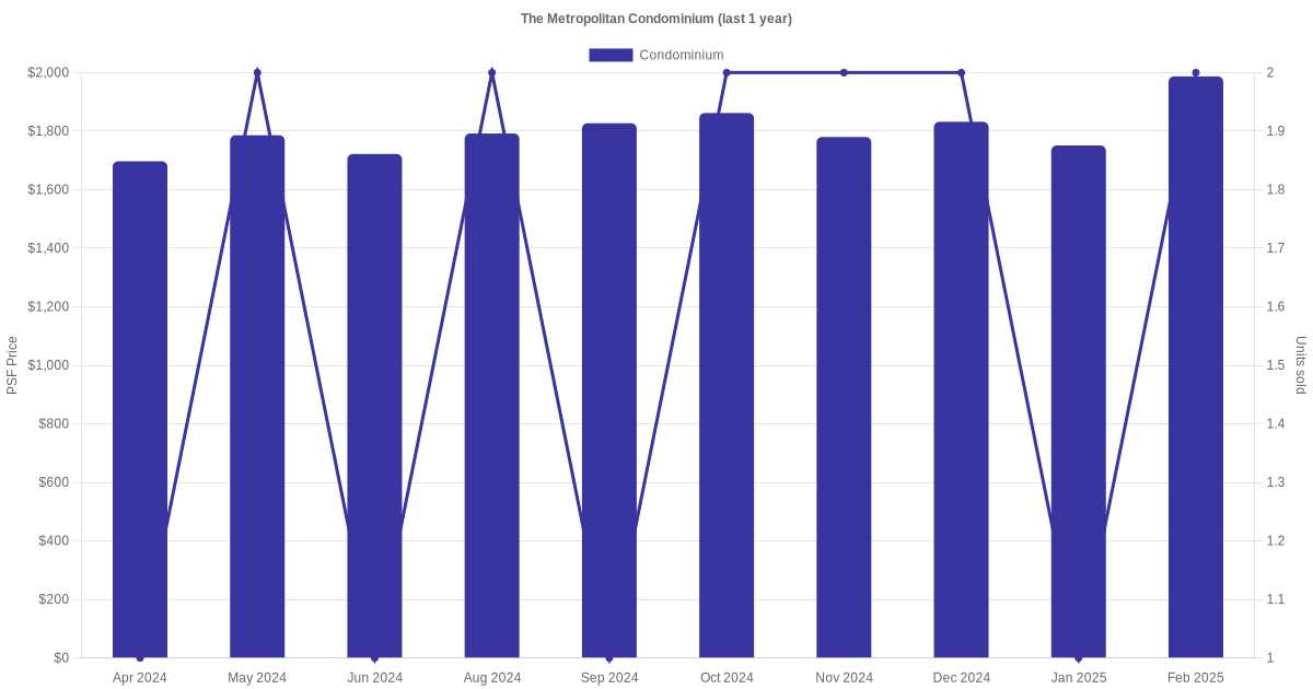 Compare sales, rental and their respective PSF price trends of The Metropolitan Condominium and other nearby private property projects within 2km.