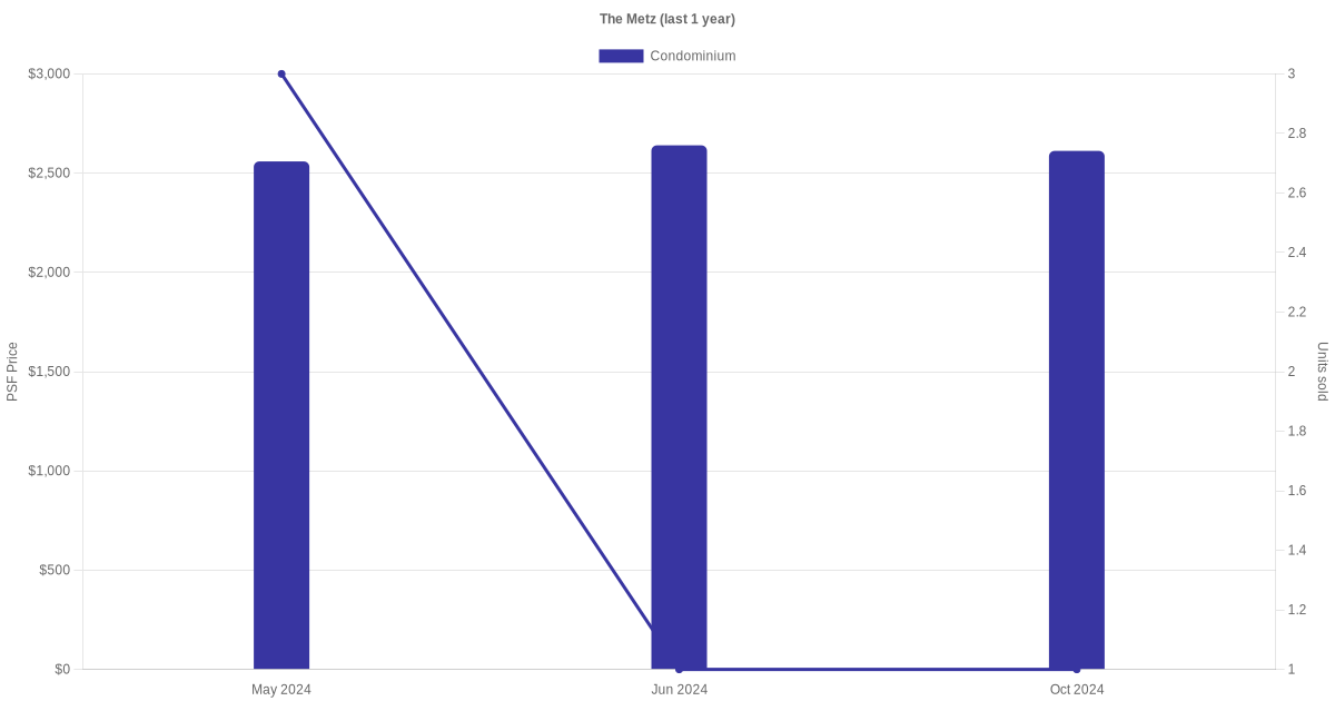 There were a total of 11 sales transactions for The Metz in the last 3 years, with the latest one recorded in Nov 2025. Disclaimer : our transactions data below does not include block numbers as the data is not available.